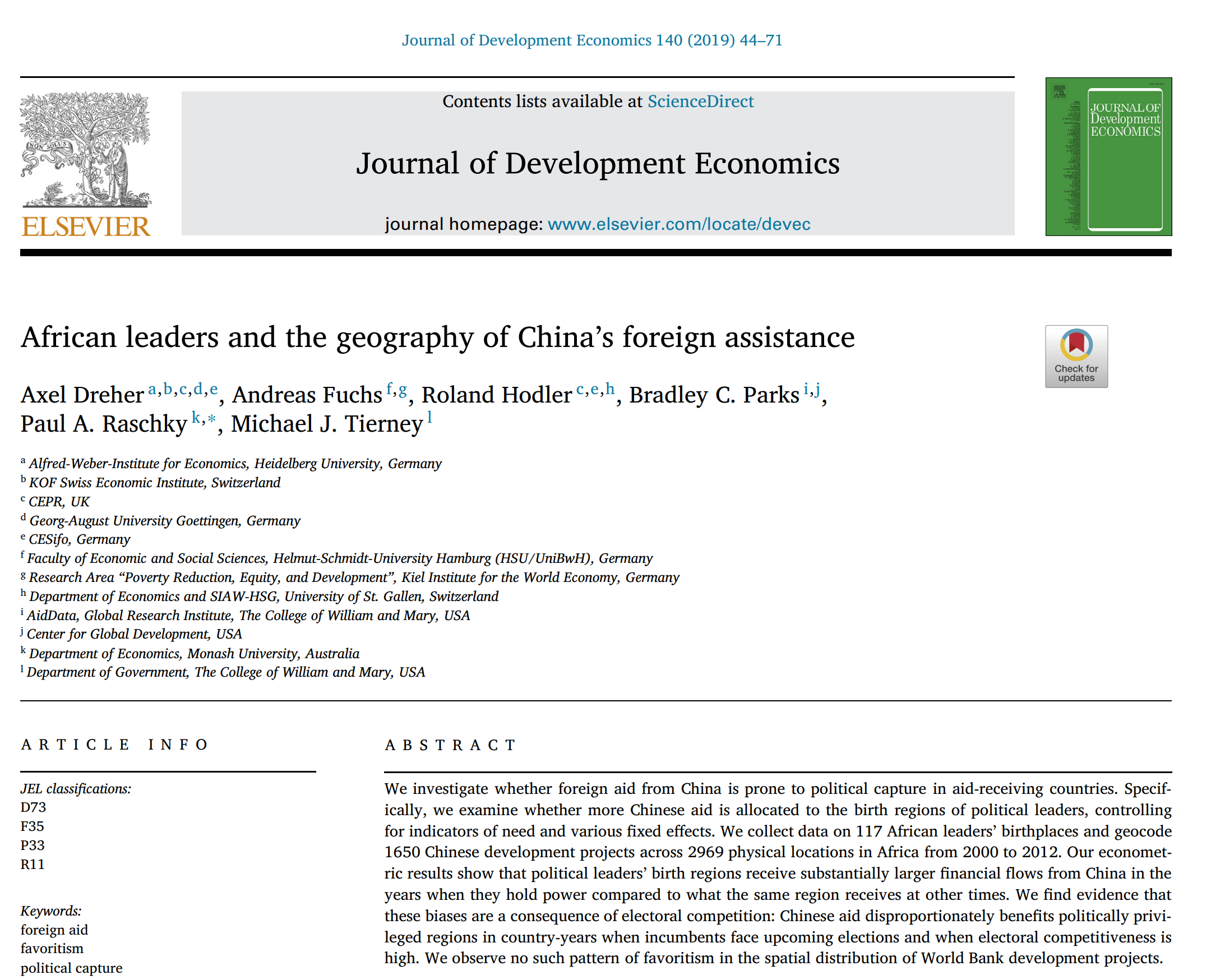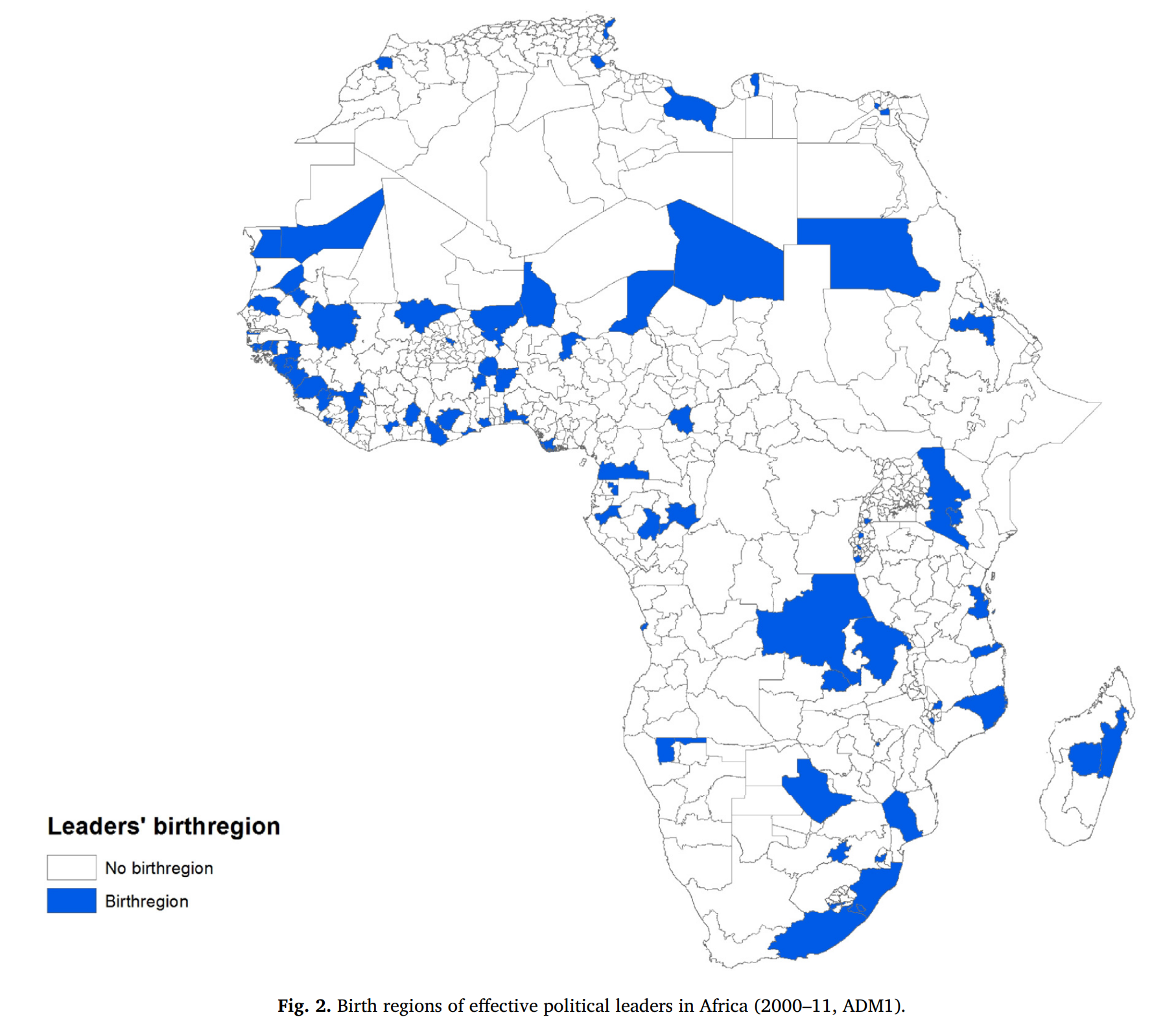 Hodler and Raschky (2014): Regional favoritism — stronger growth in origin region of ruler
